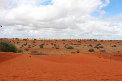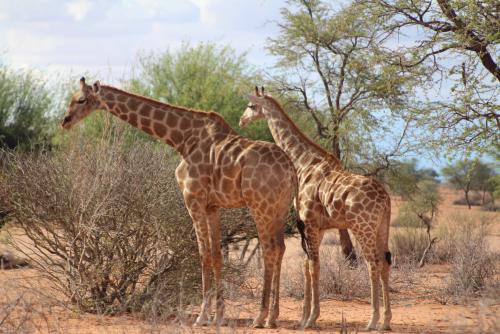 Hier war es sehr schön. Ich habe sogar ein Upgrade bekommen und somit ein eigenes Chalet für mich. Wir konnten dort herrlich entspannen und viele Tiere sehen. Am zweiten Tag machten wir einen game drive durch die Kalahari und sahen Giraffen, Strauße, Kudus, Springböcke, Elands, Gnus, Esel und Ziegen.