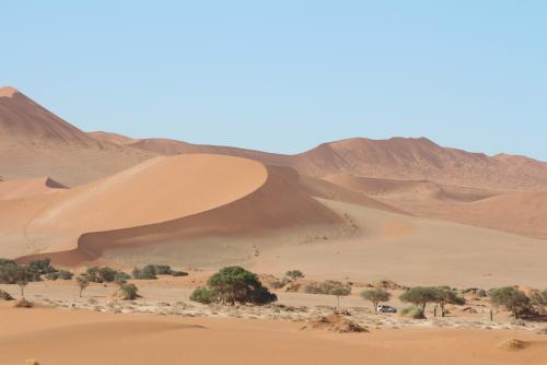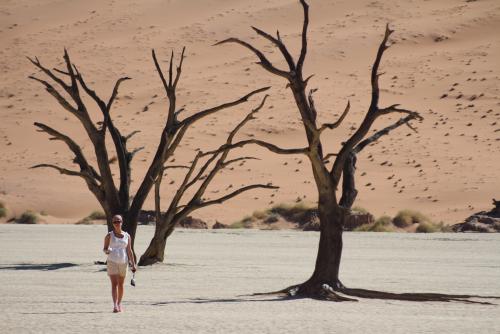 Heute ging es endlich ins Sossusvlei zu der Sossus Dune Lodge. Leider konnten wir diese schöne Unterkunft und Umgebung nur für einen Tag genießen. Gleich an diesem Tag fuhren wir noch zum Dead Vlei. Die 5 Kilometer durch tiefen Sand überstanden wir gut mit unserem Allrad Wagen. Das Dead Vlei, was ich ein paar Wochen zuvor bereits gesehen hatte, war auch diesmal wieder herrlich anzusehen.