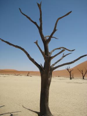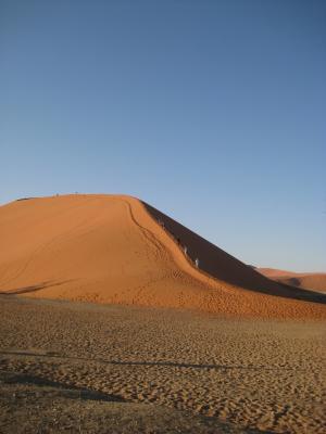 Im Deadvlei warteten dann die nächsten Dünen auf uns. Auch die mussten natürlich erklommen werden. Das Deadvlei sah äußerst interessant aus. Ganz viele tote Bäume in einem Tal und ringsum riesige Dünen.