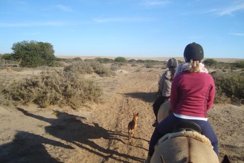 Am späten Nachmittag ging es zum Reitausflug. Wir ritten durch das ausgetrocknete Flussbett des Swakop und durch die sogenannte Mondlandschaft. Weit und breit einfach nichts zu sehen als Steppe, Sand und Steinen.